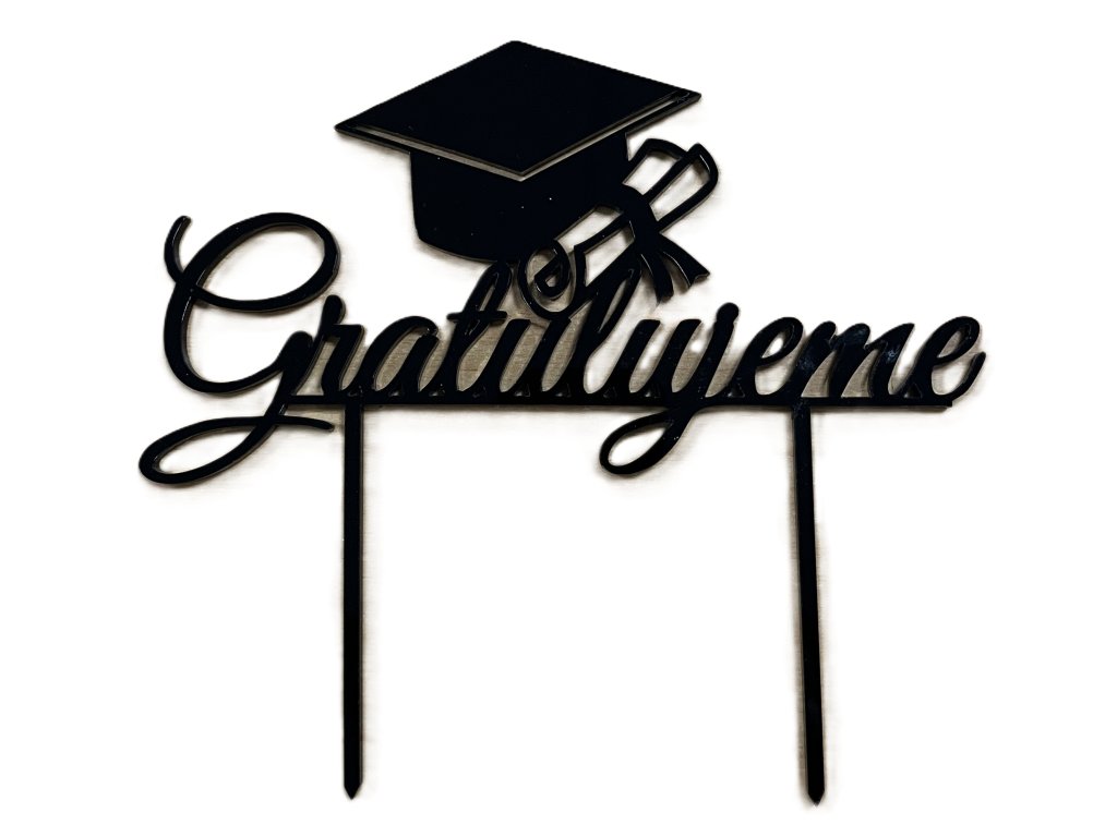 Akrylový zápich čierny GRATULUJEME + ČIAPKA