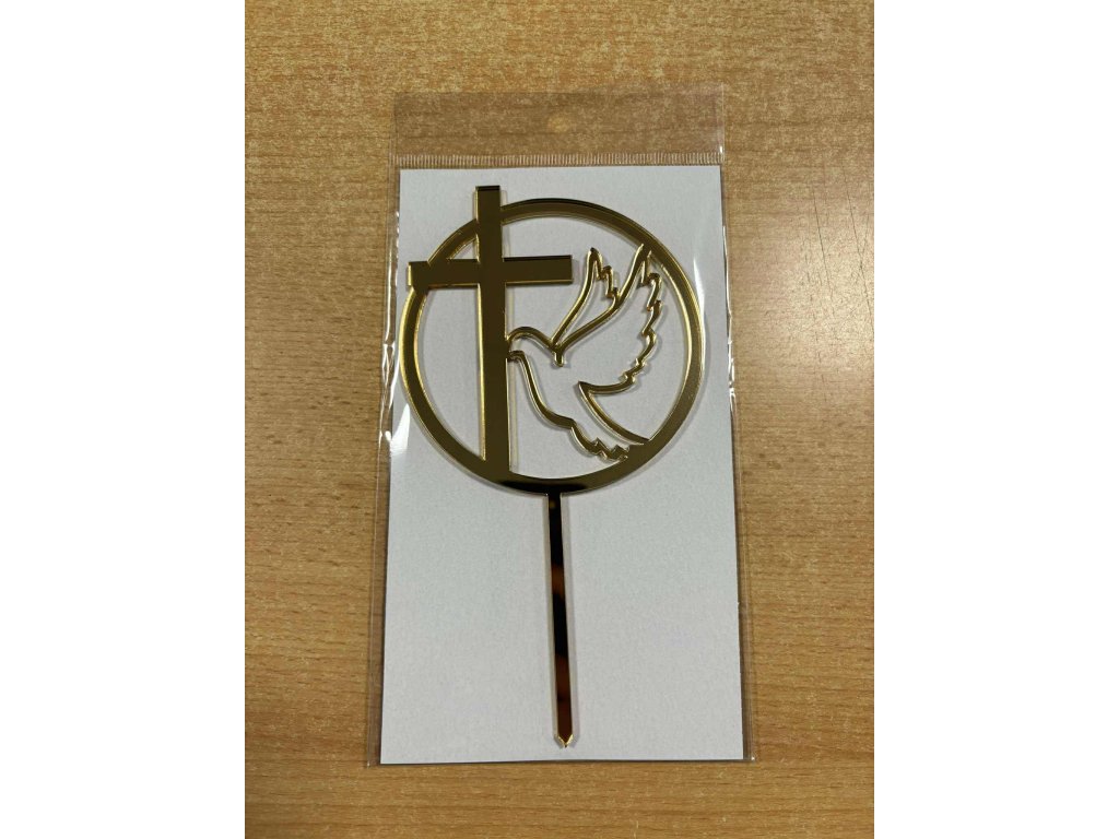 Akrylový zápich Kríž+holubica v kruhu ZLATÝ
