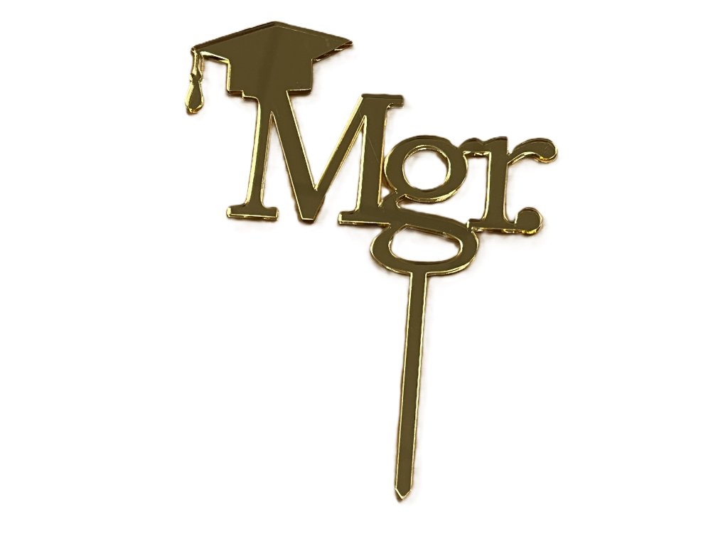 Akrylový zápich zlatý Mgr + čiapka