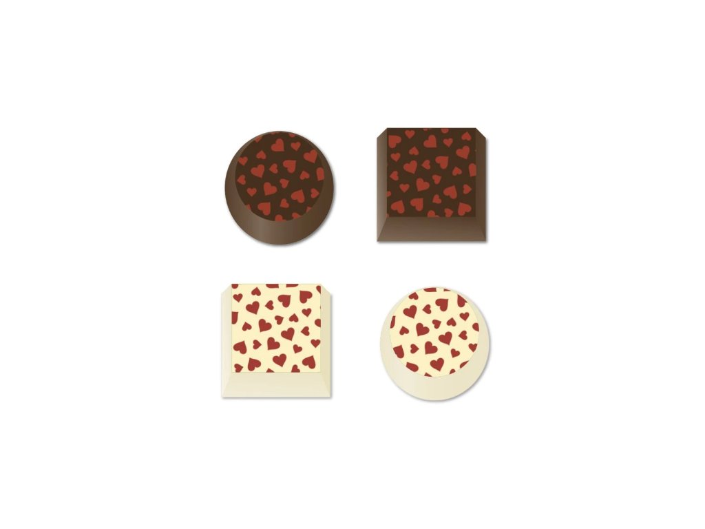 - potlačová transferová fólia na čokoládu a poťahovú hmotu s motívom srdiečok