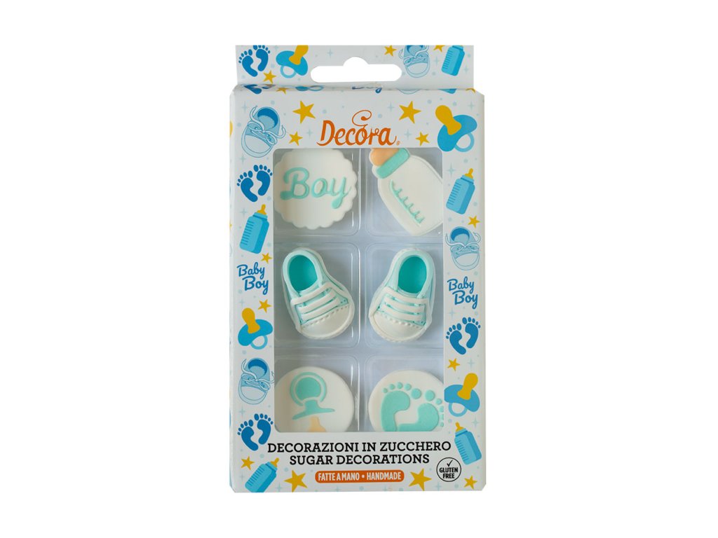 Cukrová dekorácia krst - chlapček. Ručne vyrobené s prírodnými extrahovanými farbivami.
