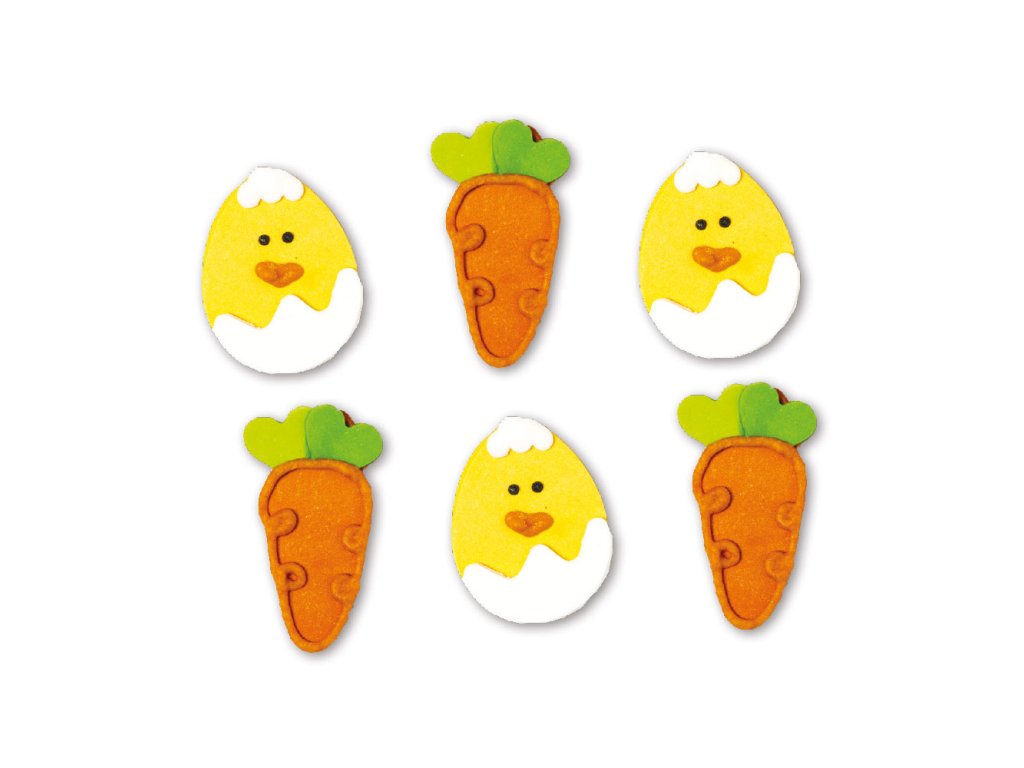 D cukrová dekorácia Kuriatka a mrkvy 6ks