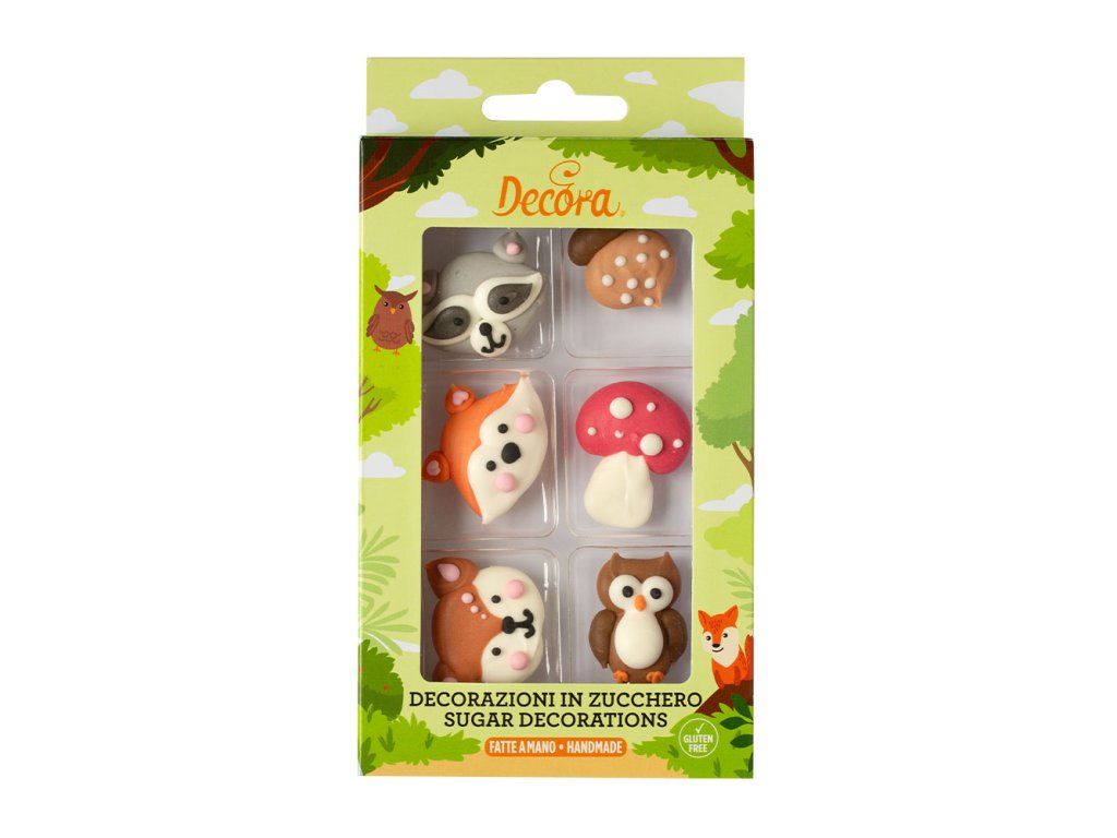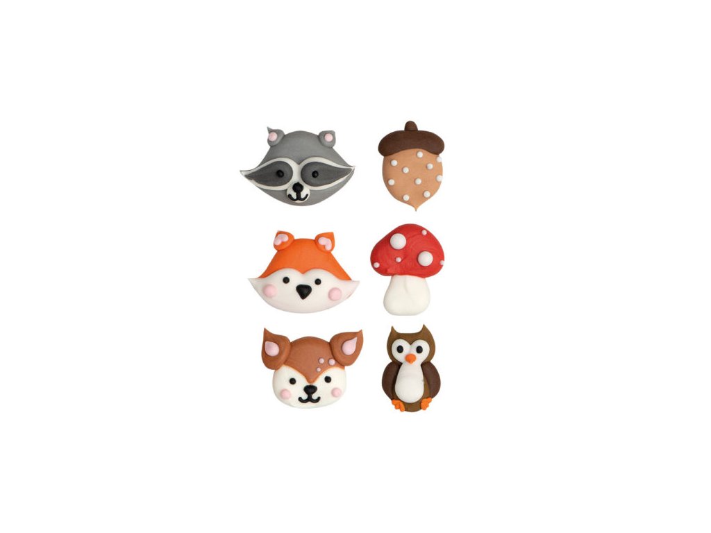 Cukrová dekorácia zvieratká z lesa. Ručne vyrobené s prírodnými extrahovanými farbivami.