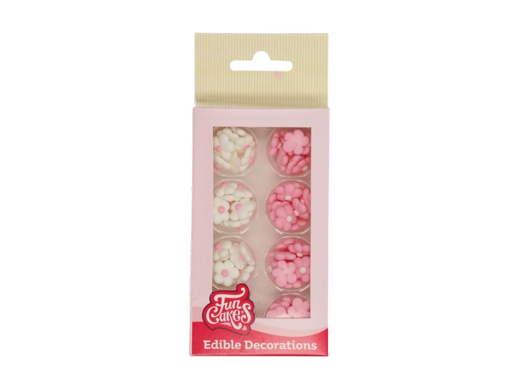 Ozdobte krásnu špirálu na torte alebo košíčku s kvietkami FunCakes mix biele a ružové.
