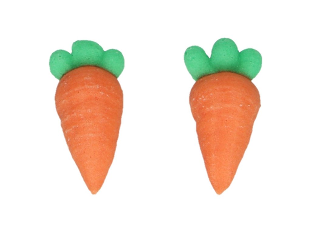 Cukrová dekorácia v tvare oranžových mrkvičiek.