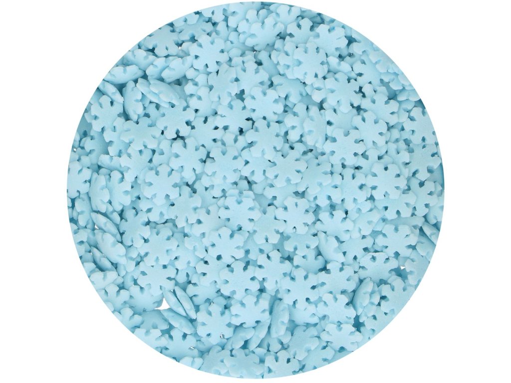 - cukrové snehové vločky bledomodrej farby vhodné ako dekorácia na torty, muffiny, cake pops, cookies, medovníky atď.
