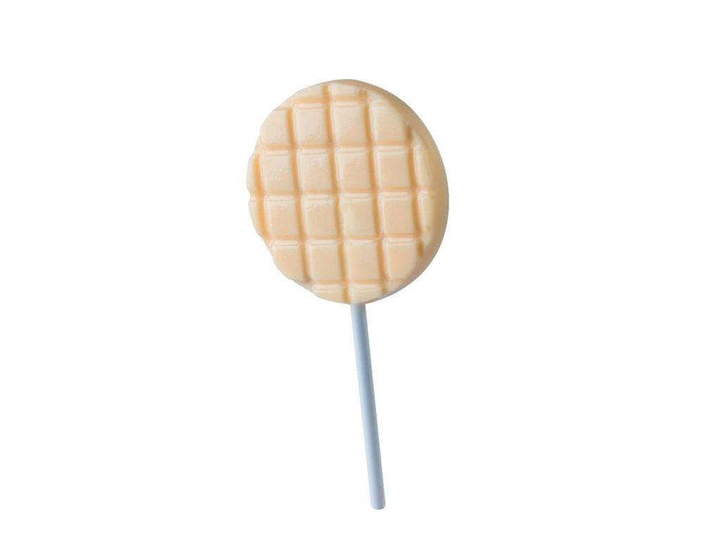 Tepelne tvarovaná plastová forma na okrúhle lízatká s textúrou tabličky čokolády.