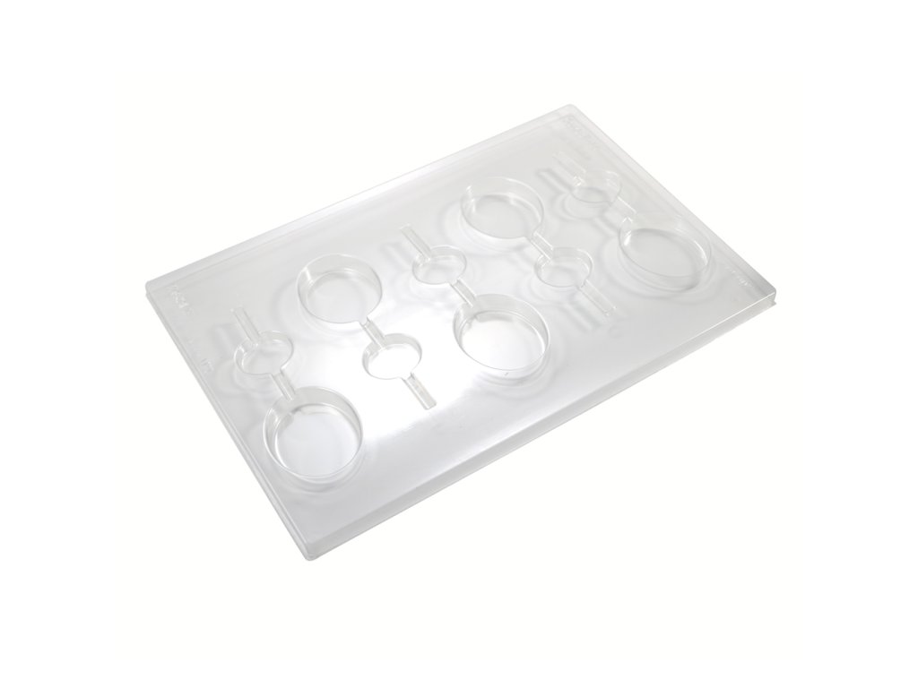 Tepelne tvarovaná plastová forma na hladké oválne lízatká.
