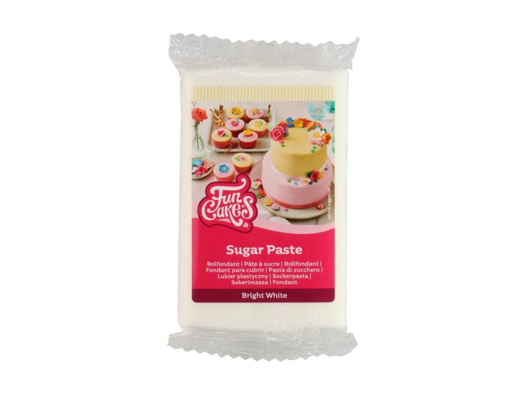 - kvalitná hmota extrémne bielej žiarivej farby (biely fondant) - vhodná na poťahovanie a modelovanie - hmota je mimoriadne flexibilná a ľahko použiteľná, pretože má mäkkú štruktúru - po použití jemne tvrdne, ale nepraská vanilková chuť, bez lepku a AZO farbív Použitie: dobre premiešajte a rozvaľkajte na podložke posypanej škrobom (zemiakovým alebo kukuričným). Na tortu s priemerom 24-26cm potrebujete min. 500g-700g FunCakes hmoty. Pre modelované dekorácie pridajte na každých 250g hmoty 1 lyžičku Tylo púdru a v prípade potreby i trošku vody. Zloženie: cukor, glukózový sirup, rastlinný tuk (palmový a z palmových jadier), voda, zvlhčovadlo: E422, zahusťovadlá: E415 a E466, emulgátor: E471, prírodná aróma, konzervant: E200, regulátor kyslosti: E330. Môže obsahovať stopy mandlí. Bez gluténu a laktózy. Spotreba: 6-9 mesiacov od zakúpenia. Skladujte na chladnom a tmavom mieste. Vyrobené v Holandsku.Buďte prvý, kto napíše príspevok k tejto položke.