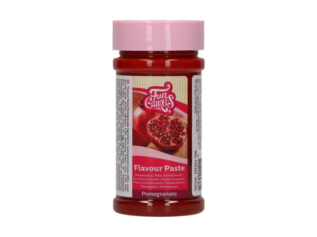 Príchuť je ideálna na ochutenie do vášho krému, čokolády, šľahačky, zmrzliny a rôznych náplní. FunCakes príchute môžu byť pridané i do cesta a sú tiež vhodné na pečenie. Sú ideálne pre pridanie lahodnej chuti cestu, piškóte, koláčiku, makrónke či tartaletke. Použitie: jednoducho pridajte odporúčané dávkovanie uvedené na obale do vášho cesta či krému. Ak pečiete pri vysokých teplotách (nad 200°C), pridajte viac, pretože vysoká teplota oslabuje silu príchute. Vhodné aj do čokolády ganache. Dávkovanie: 30g na 500g hmoty. Hmotnosť: 120g. Zloženie: šťava z granátových jabĺk (40%), cukor, glukózový sirup, kyselina citronová E330, prírodná aróma, farbivá: E163, E100, zahusťovadlo: E440. Môže obsahovať stopy vajec, mlieka a orechov. Vyrobené v Holandsku.Buďte prvý, kto napíše príspevok k tejto položke.