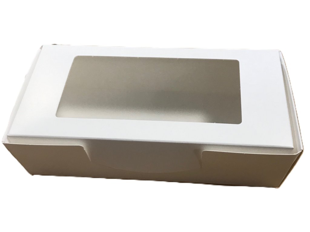 Krabica s okienkom vhodná na koláče alebo makarónky.