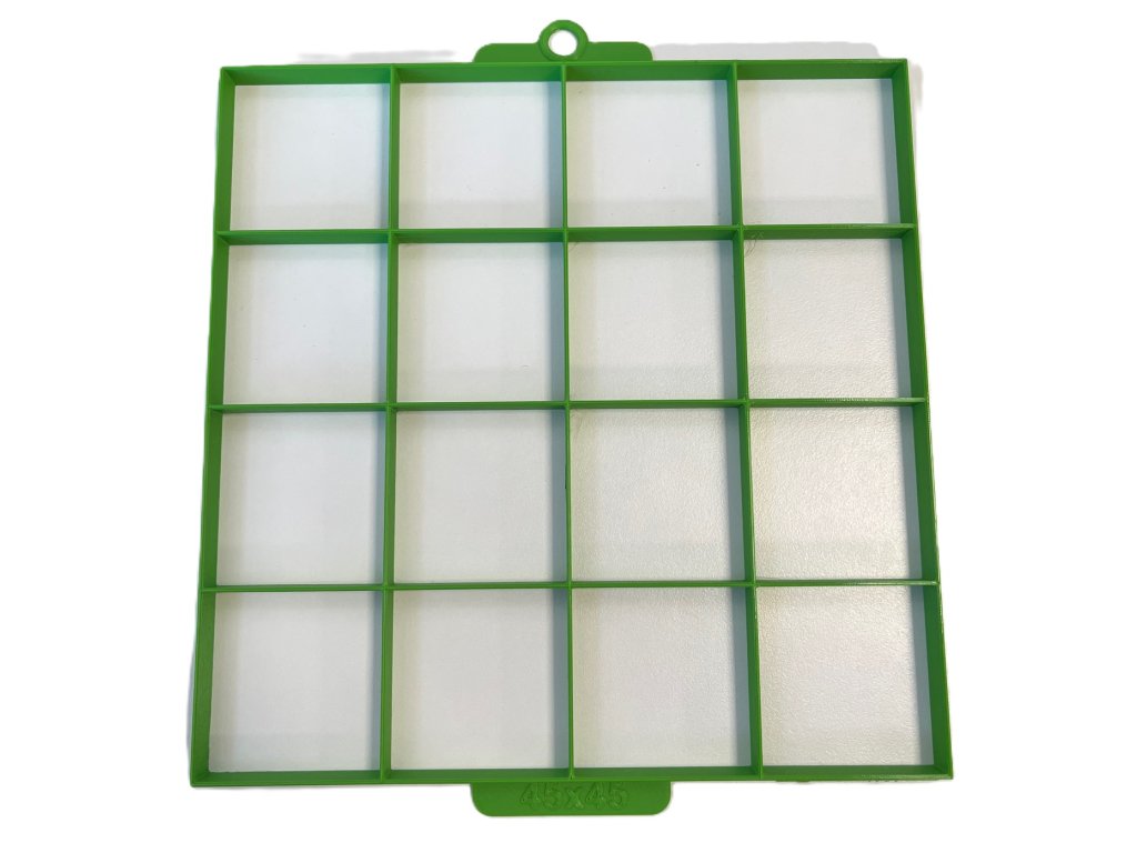 Plastový naznačovač rezov na zákusky o rozmere 4,5 x 4,5cm. Jednoduchá pomôcka, s ktorou docielite úhladné a rovnaké rezy. Stačí priložiť na povrch rezov, jemne otlačiť a rozkrájať. Jediným priložením naznačovača dokážete naznačiť 9 zákuskov. V prípade potreby priložíte naznačovač viackrát. Plastový naznačovač je vyrobený z PLA materiálu - bio plast na báze kukurice a cukrovej repy, ktorý je plne certifikovaný na styk s potravinami. Odolný do 50 °C. Výrobok umývajte ručne vo vlažnej vode. Nevhodný do umývačky riadu ani do mikrovlnnej rúry. Pred prvým použitím naznačovač umyte. Farba materiálu je ilustračná.Buďte prvý, kto napíše príspevok k tejto položke.