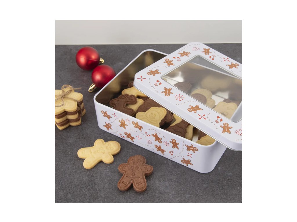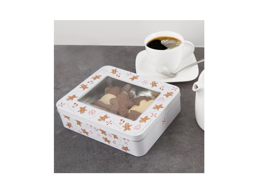 Dóza s viečkom s dekorom PERNÍČEK. Skvelá ako darček naplnená vašimi vlastnými cukrovinkami.
