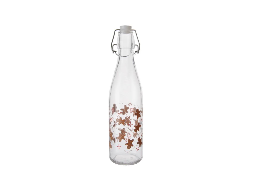 Fľaša s dekorom na slivovicu, vaječný likér, sirup, šťavu a iné nápoje.
