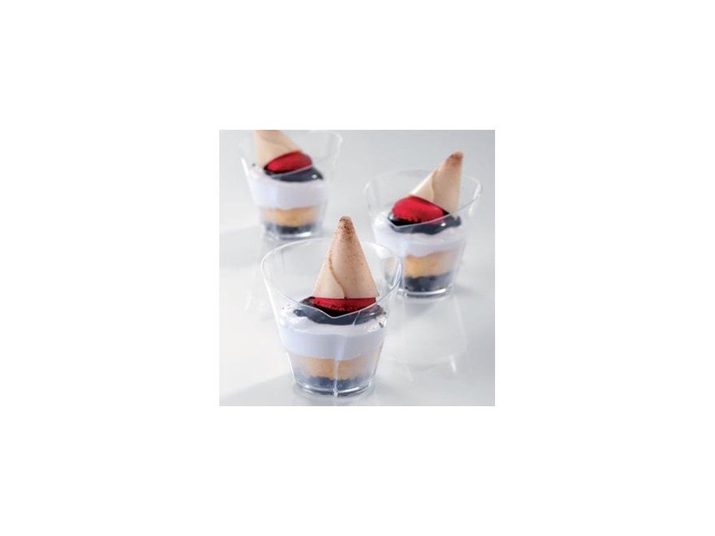 Priehľadný pohárik na elegantné dezerty. Vhodný na viacnásobné použitie. Balenie 1ks Objem: 70ml. - vhodné pre rôzne monoporcie: panna cottu, tiramisu, smotanové poháre, ovocné dezerty.. - priehľadnosť zvýrazní vzhľad a vrstevnatosť dezertu Rozmery: 64 x 62mm, výška 52mm. Naplnené poháriky možno zachladzovať alebo zmrazovať. Mrazenie a chladenie: 10 dní do 40°C. Teplé jedlá 2 hodiny do 70°C. Horúce do 100°C maximálne 15 minút. - nevhodné do mikrovlnnej rúry a do umývačky riadu! Materiál: plast.Buďte prvý, kto napíše príspevok k tejto položke.