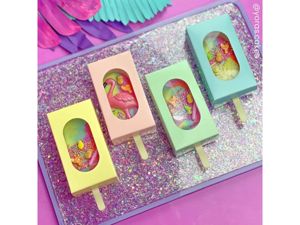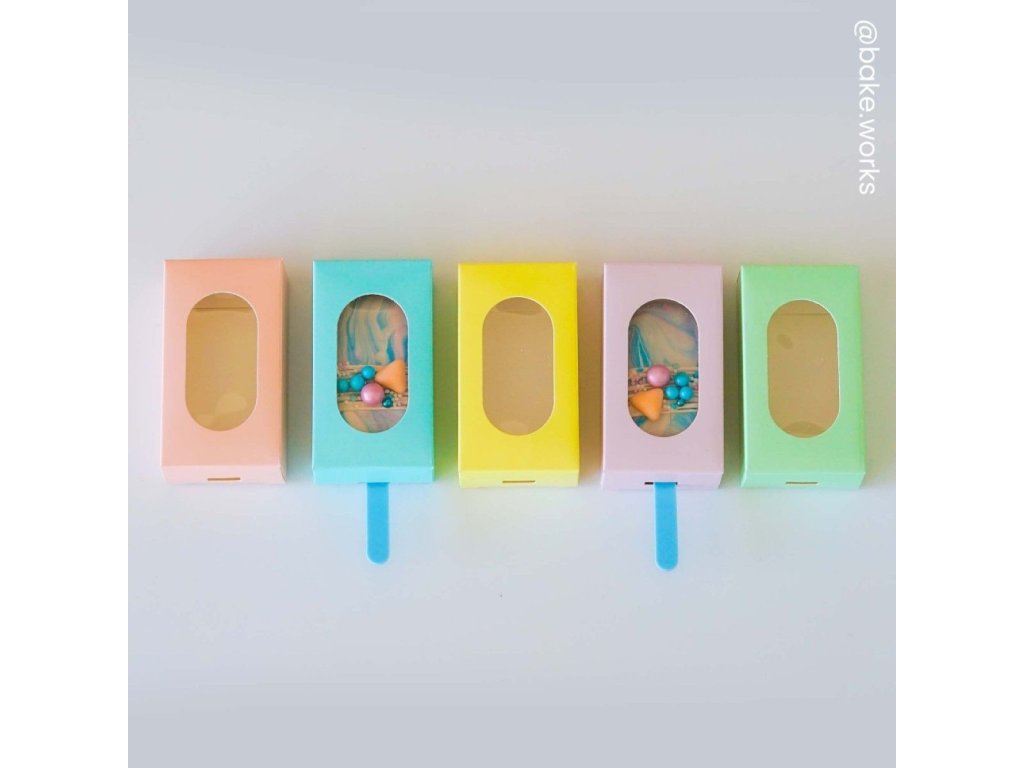 Toto balenie 10 krabičiek na nanuky má rozprávkový pastelový žltý lesklý povrch,
