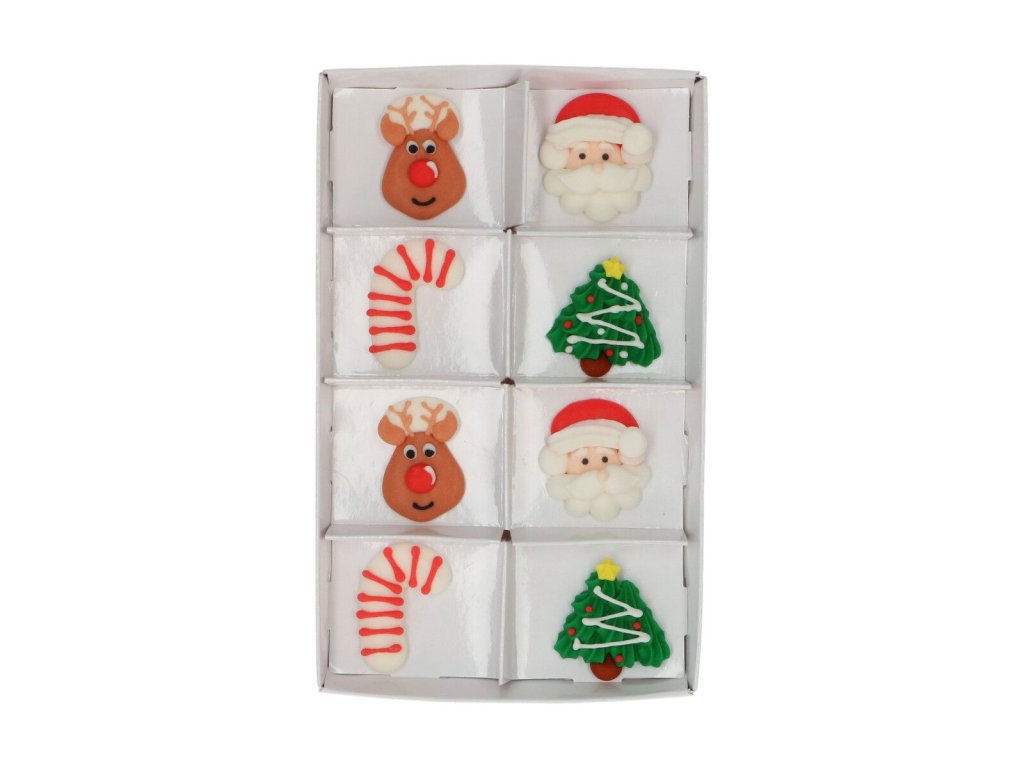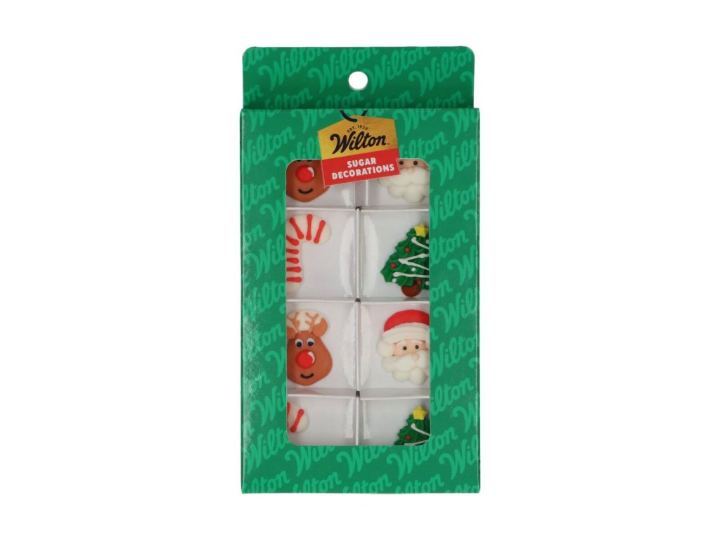 Wilton Merry Christmas. Táto sada obsahuje 8 farebných cukrových ozdôb v klasických