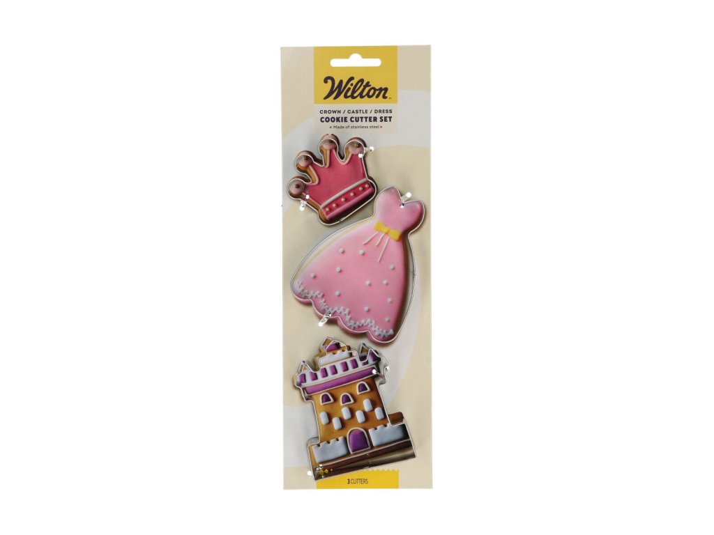 Wilton kovové vykrajovačky 3ks - koruna, šaty, zámok
